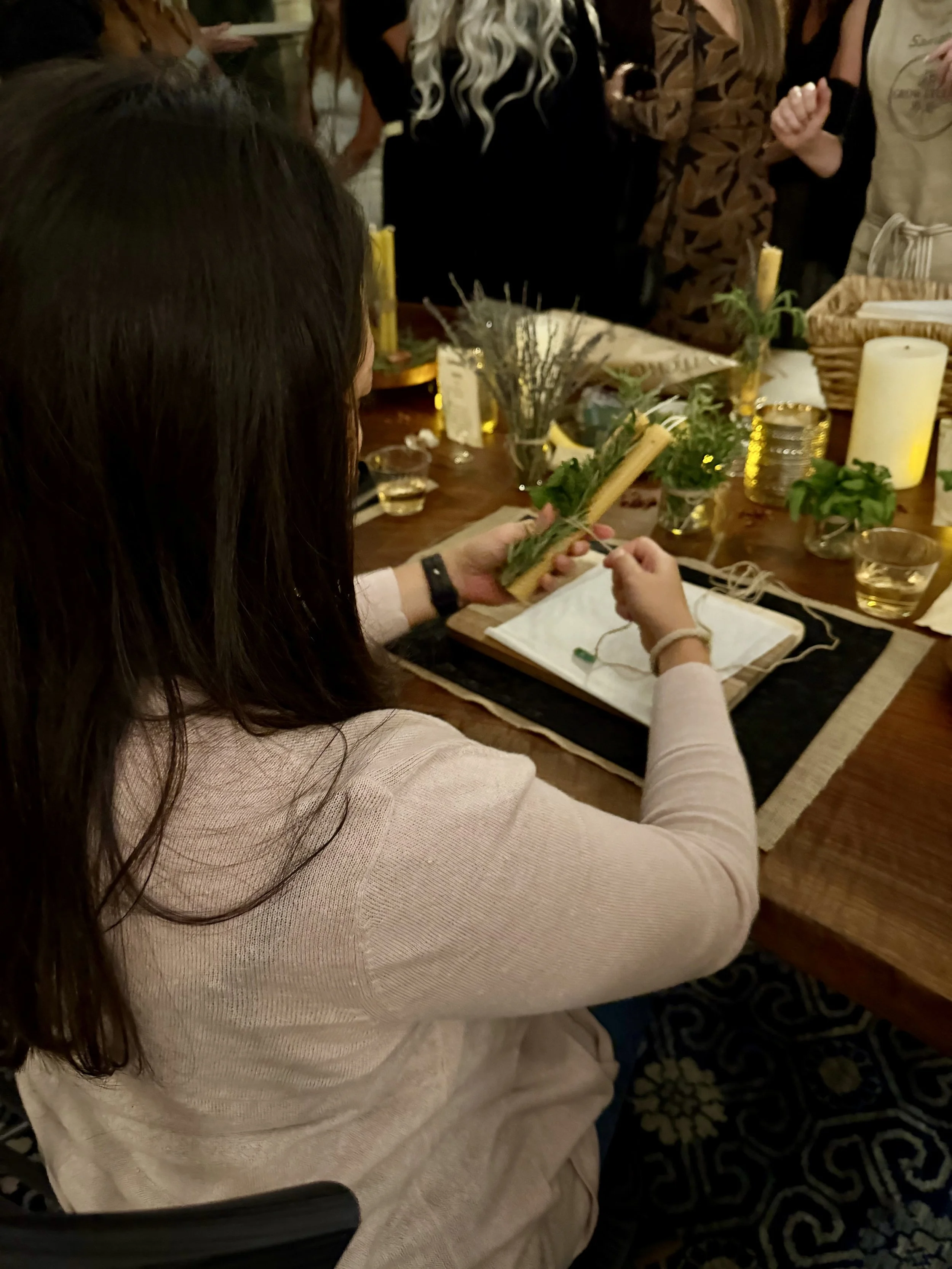 Gather your friends for a night of magic and creativity. 🌙 Together we’ll craft intention terrarium jars with herbs and aromatherapy spheres, and hand-roll beeswax candles wrapped with crystals and twine. 🕯️